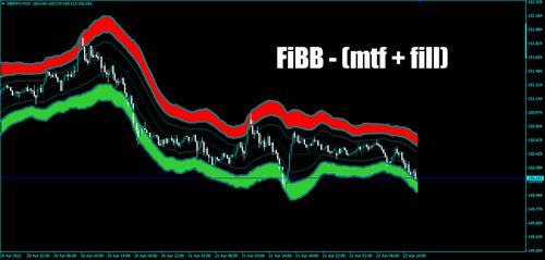 FiBB - (mtf + fill) FiBB - (mtf + fill)はフィボナッチボリンジャーバンドにMTFがついたものです。さらに一番外側のエリアを塗りつぶすことができます。アラートはありませんがフィルターとして使えると思います。