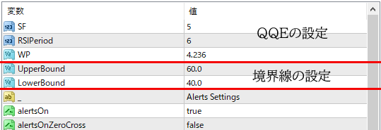 本来は50のセンターラインを基準に売り買いをするのですが今回の「QQE-New」はセンターラインがゼロラインになっています。