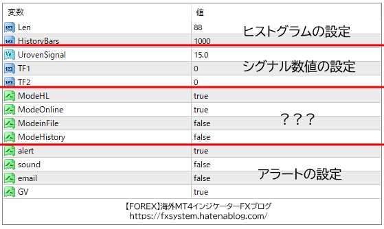 サムネのパラメーターです。以前紹介した謎のインジケーターを参考にパラメーターを変更しました。パラメーターの「レベル表示」も6から15に変更したので使う際は「レベル表示」のところも変更してください。