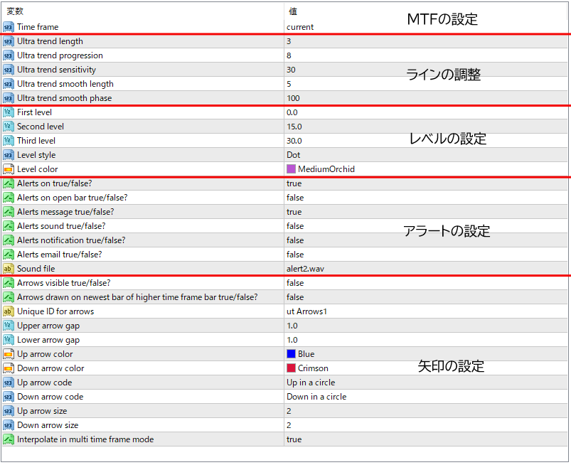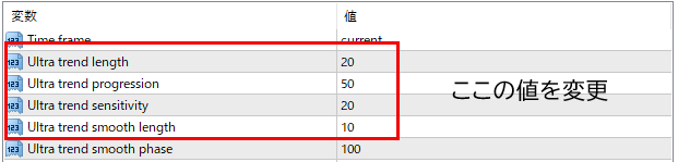 - ultra trend basic smooth (mtf + alerts + arrows)のパラメーター