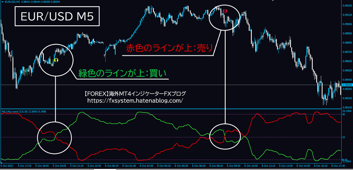 - 緑が上に位置している場合は、買い